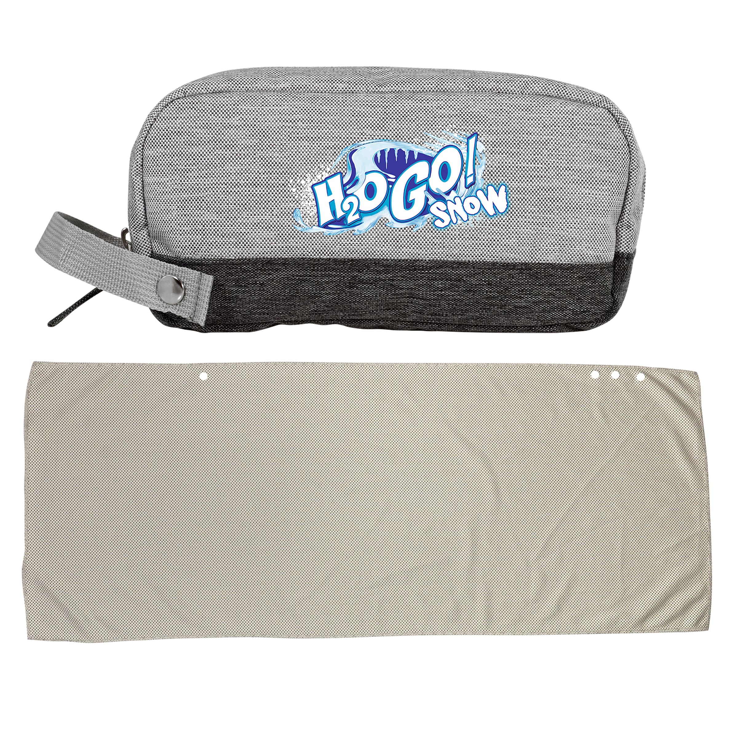 Stay organized and stylish on-the-go with our 208 GSM Polyester Bay Travel Pouch, complete with a colorful accent hand strap for added flair. This multi-functional pouch also doubles as a cooling dry cloth, making it perfect for hot days or sweaty workouts. Simply snap it closed for easy transport and enjoy the convenience of having everything you need at your fingertips. Complies with Prop 65. 8″ L x 4.5″ H x 3.5″ W