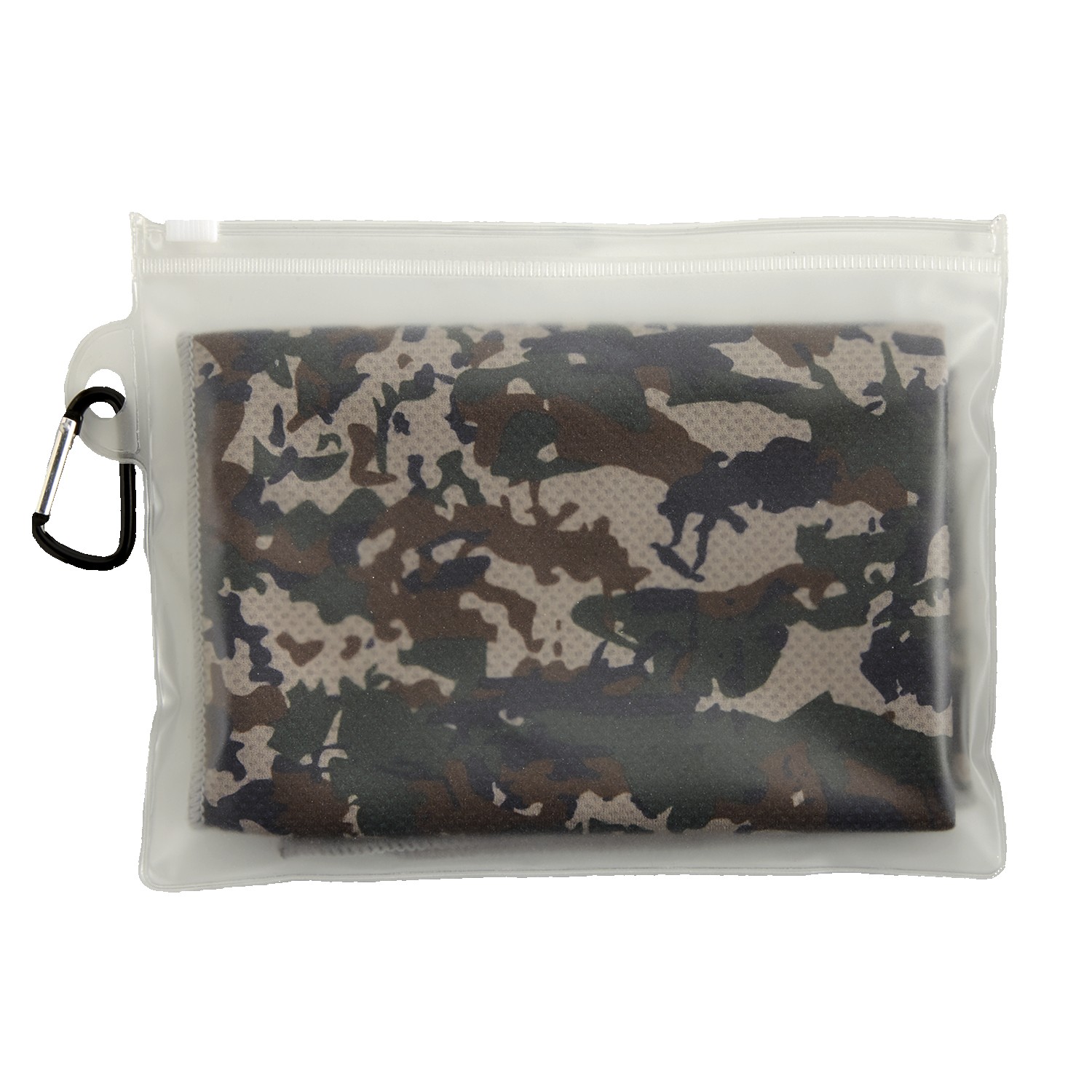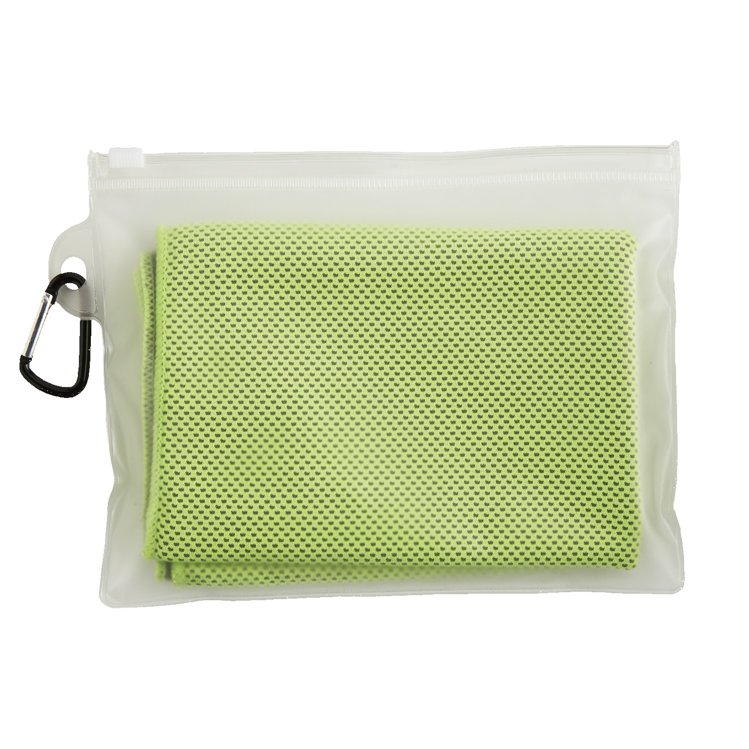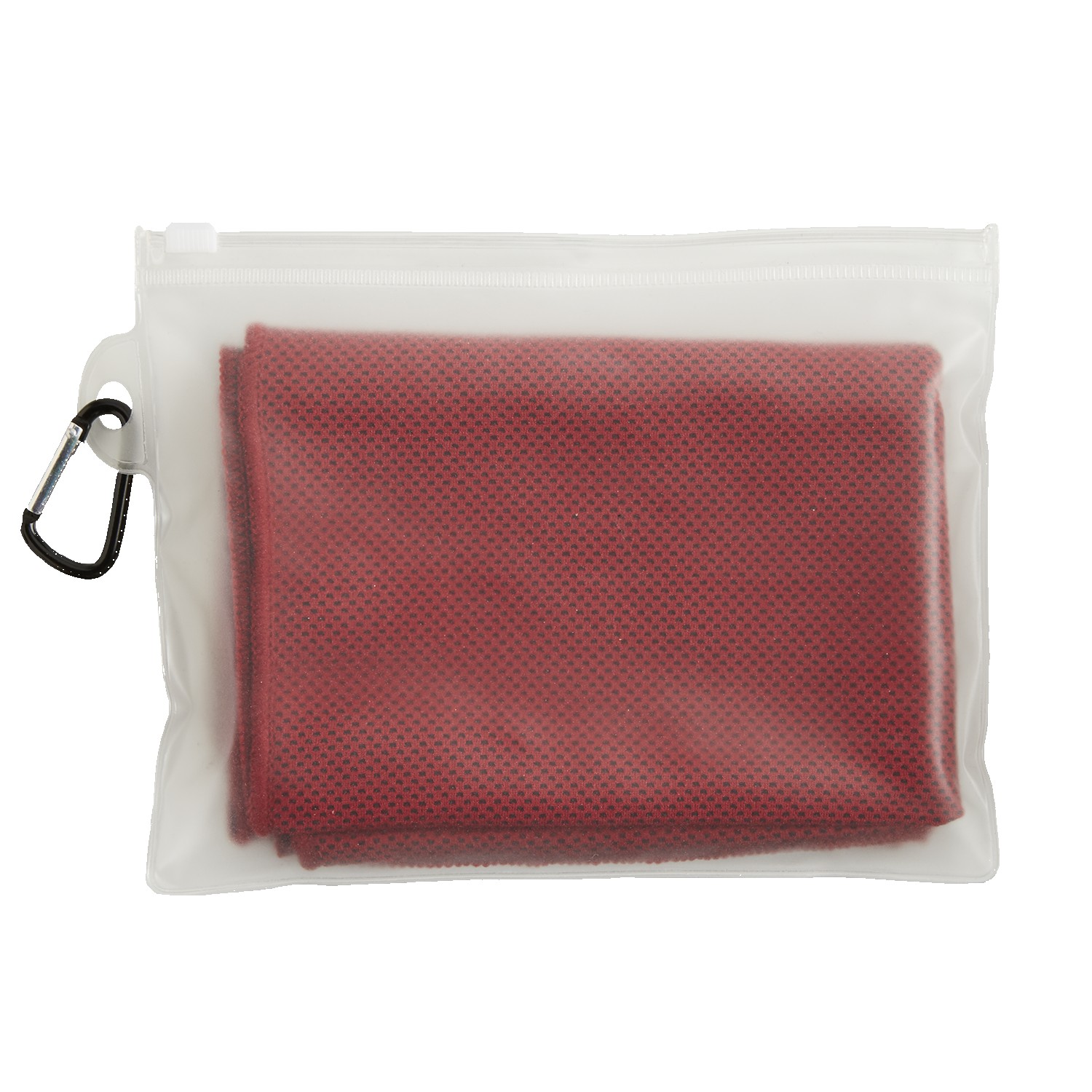 Instantly cools when wet with water or perspiration. Lightweight, soft and breathable. Mesh like construction and PVC pouch with carabiner. 5 3/8″ H x 7″ W